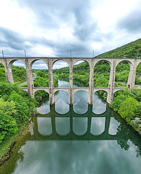 Joli pont, non ? Au-dessus de l’Ain et au cœur des contreforts du Jura, il est super photogénique ! Et utile aussi : le viaduc de Cize-Bolozon est emprunté à la fois par des voitures et des trains.